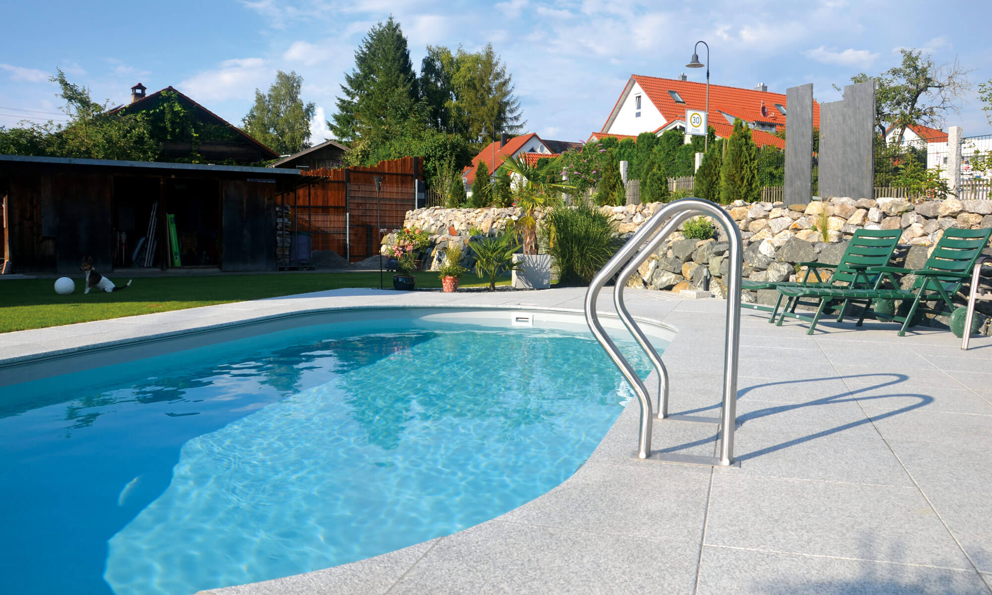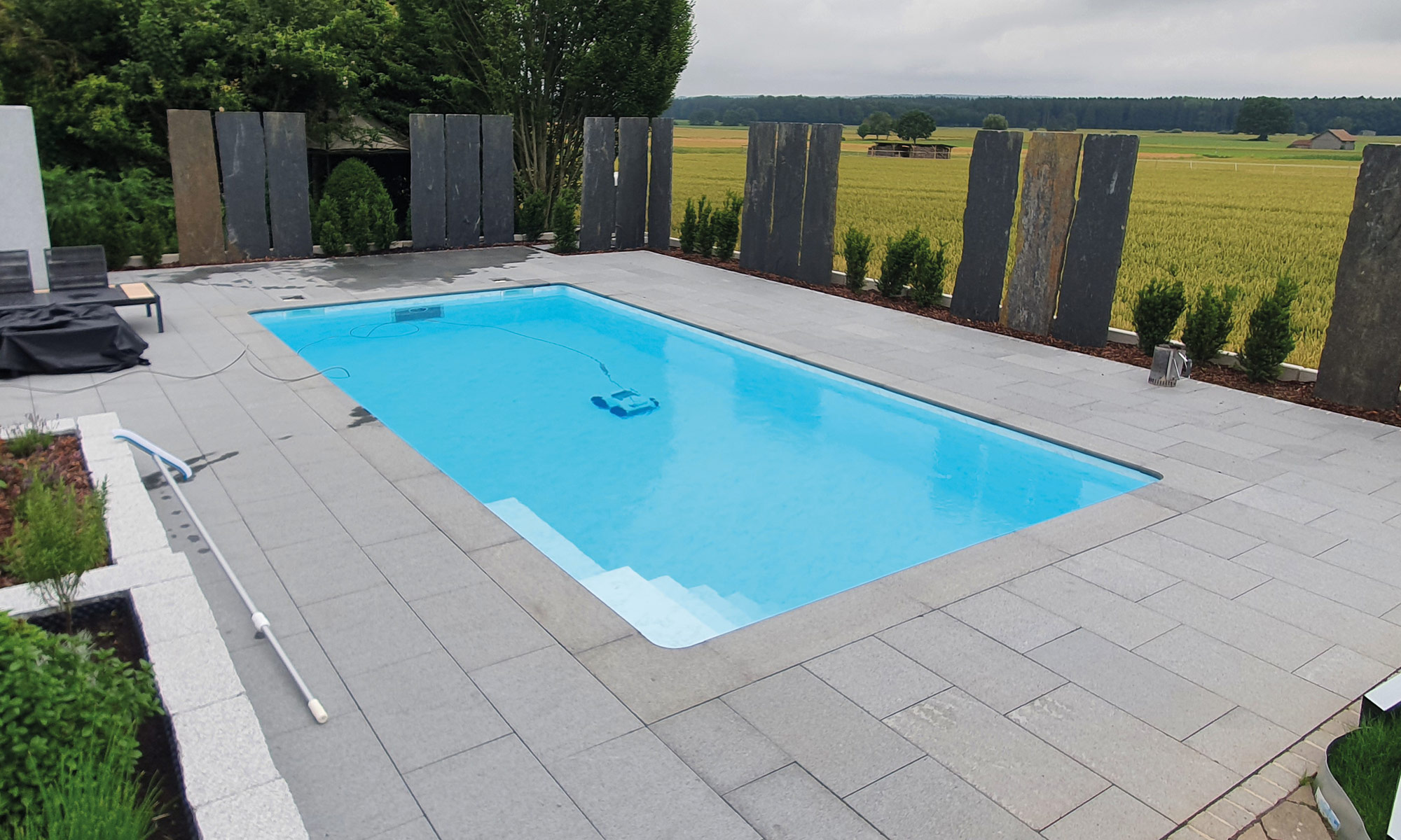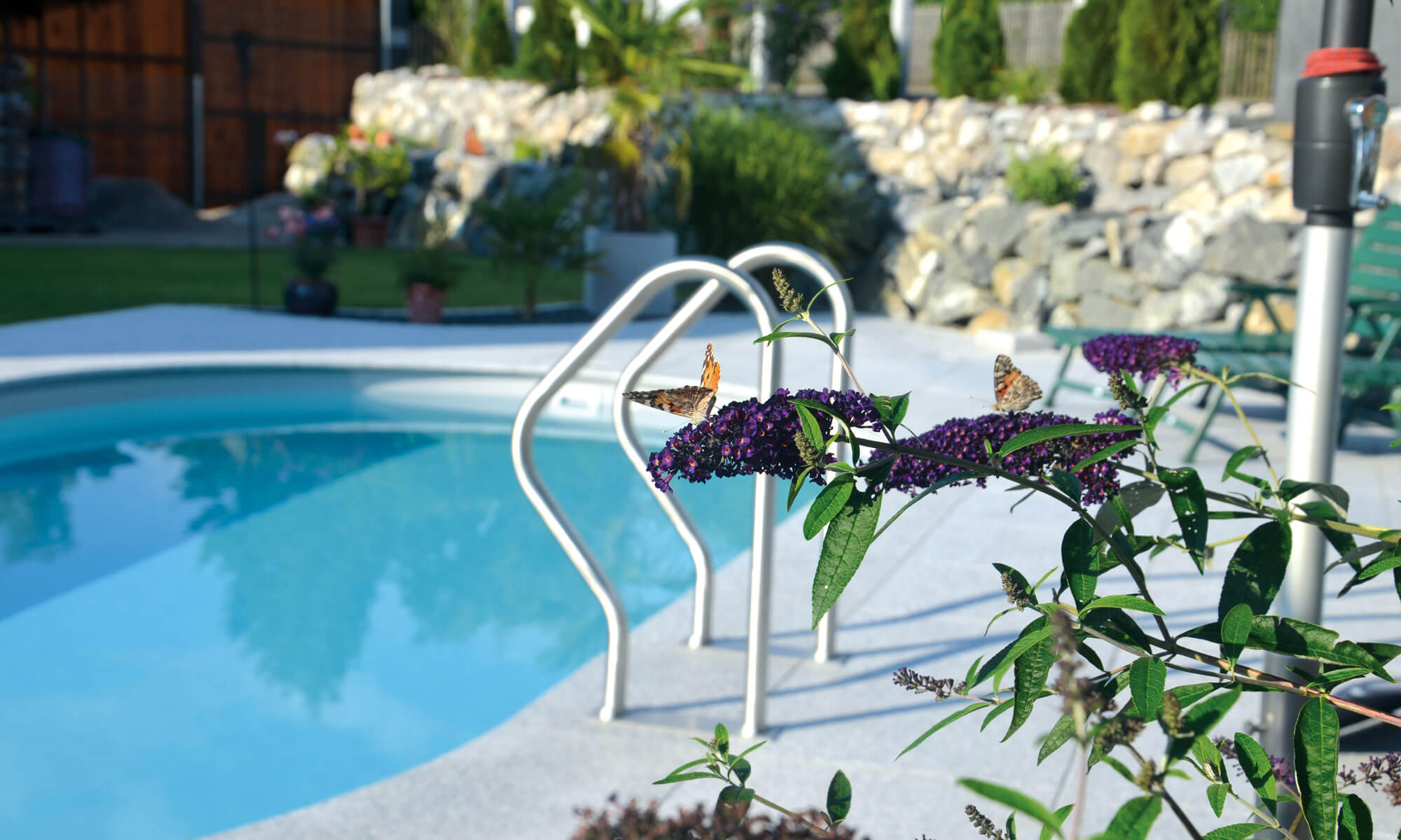 Wer gerne nach der Arbeit noch eine kleine Runde schwimmen möchte, dem legen wir einen Schwimmteich oder einen Pool nahe. Ein Schwimmteich fügt sich wunderbar in das Gesamtbild Ihres Gartens ein und wirkt sehr naturbelassen, perfekt um einen lauen Sommerabend zu genießen. Wer lieber ein paar Bahnen schwimmen oder mit den Kindern planschen möchte dem empfehlen wir einen Pool, den wir je nach Wunsch angepasst in Ihren Garten einplanen können.